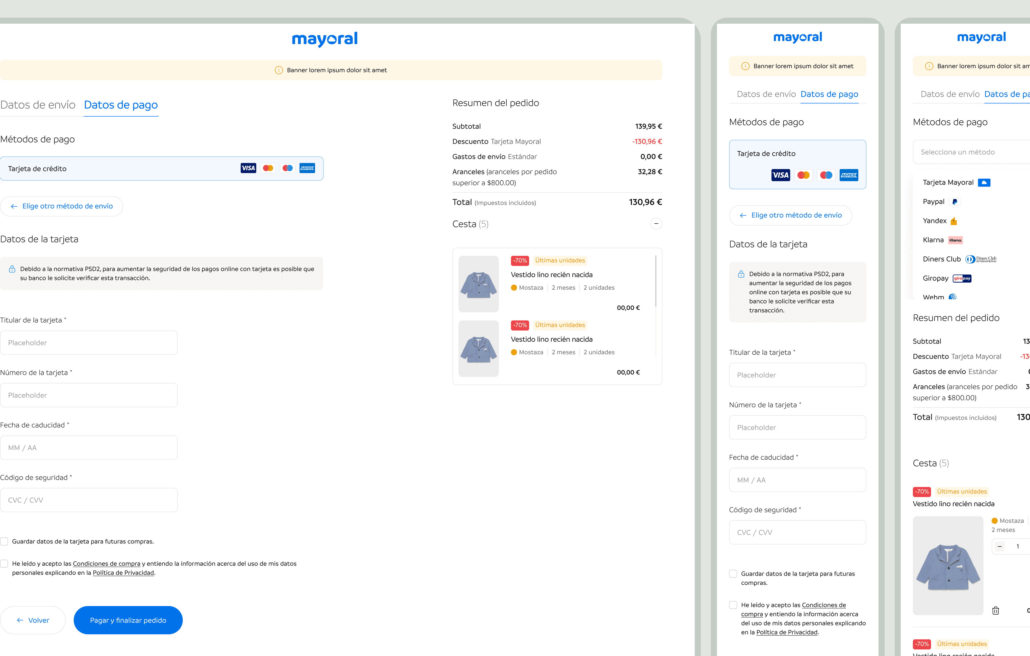 El resultado final del diseño UX/UI para este ecommerce de ropa infantil se enfoca en las mejores prácticas, accesibilidad en sus componentes, ofreciendo una interfaz intuitiva con navegación clara, imágenes de alta calidad que destacan los productos y filtros de búsqueda precisos para una experiencia de compra personalizada. Garantiza una seguridad sólida en transacciones, opciones de pago fluidas y un diseño responsive que se adapta a dispositivos móviles, promoviendo la facilidad de uso y la accesibilidad para los usuarios, maximizando así la satisfacción del cliente y la conversión de ventas. Con facil onboarding para nuevos usuarios.
